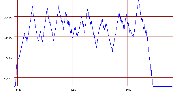 First record 12h45m00s Takeoff,Finish: Dvur Kralove Start: KOCBERE Landing: Turnpoint 1/4: RYCHNOV N.K. Turnpoint 2/4: Jicin Turnpoint 3/4: Velke Porici Turnpoint 4/4: Dvur Kralove Last record 15h10m53s trace Color: trace Width: Layers from www.openaip.net Airports/Airspaces |