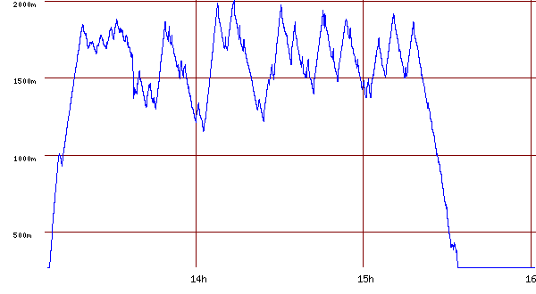 First record 13h04m29s Takeoff,Finish: Medlanky Start: BILOVICE TV Landing: Turnpoint 1/4: Policka Turnpoint 2/4: Zamberk Turnpoint 3/4: WIND POWER PL Turnpoint 4/4: Medlanky Last record 15h29m30s trace Color: trace Width: Layers from www.openaip.net Airports/Airspaces |
