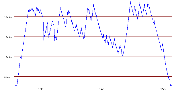 First record 12h35m33s Takeoff,Finish: Medlanky Start: BILOVICE TV Landing: Turnpoint 1/3: Jihlava Turnpoint 2/3: Skutec Turnpoint 3/3: Medlanky Last record 15h09m48s trace Color: trace Width: Layers from www.openaip.net Airports/Airspaces |